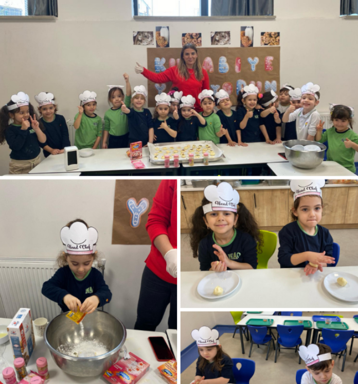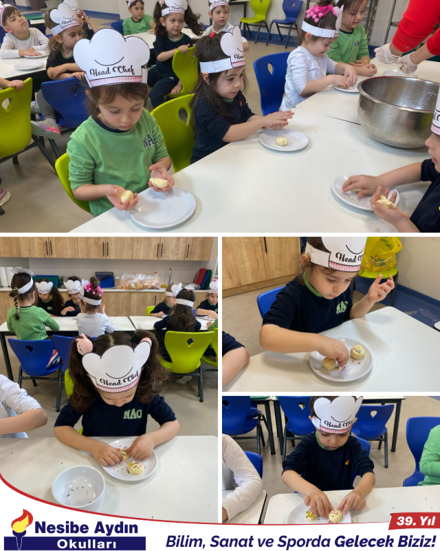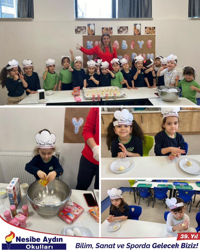 PYP temelli eğitimlerine hız kesmeden devam eden 4 yaş anaokulu grubu öğrencilerimiz harika bir mutfak etkinliğinde bir araya geldiler. Öğretmenleri gözetiminde leziz kurabiyeler hazırlayan minik şeflerimiz, hem doyasıya eğlendiler hem de hayat becerilerini pekiştirdiler.